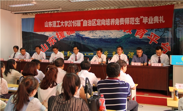 最后,胡军海代表新疆自治区教育厅向山东省、山东理工大学对新疆教育工作的无私帮助、真情奉献再次表示感谢。他希望广大毕业生心怀感恩,扎根基层,潜心教学,尽快成为所教课程专业的行家里手,成为教书育人的专家楷模;希望大家始终牢记教育工作者、国家公职人员、知识分子“三重身份”,争做有理想信念、有道德情操、有扎实学识、有仁爱之心的“四有”好老师,争做党和人民满意的有历史责任感、为人师表、立德树人、专业过硬的新疆特色的“四好老师”。
