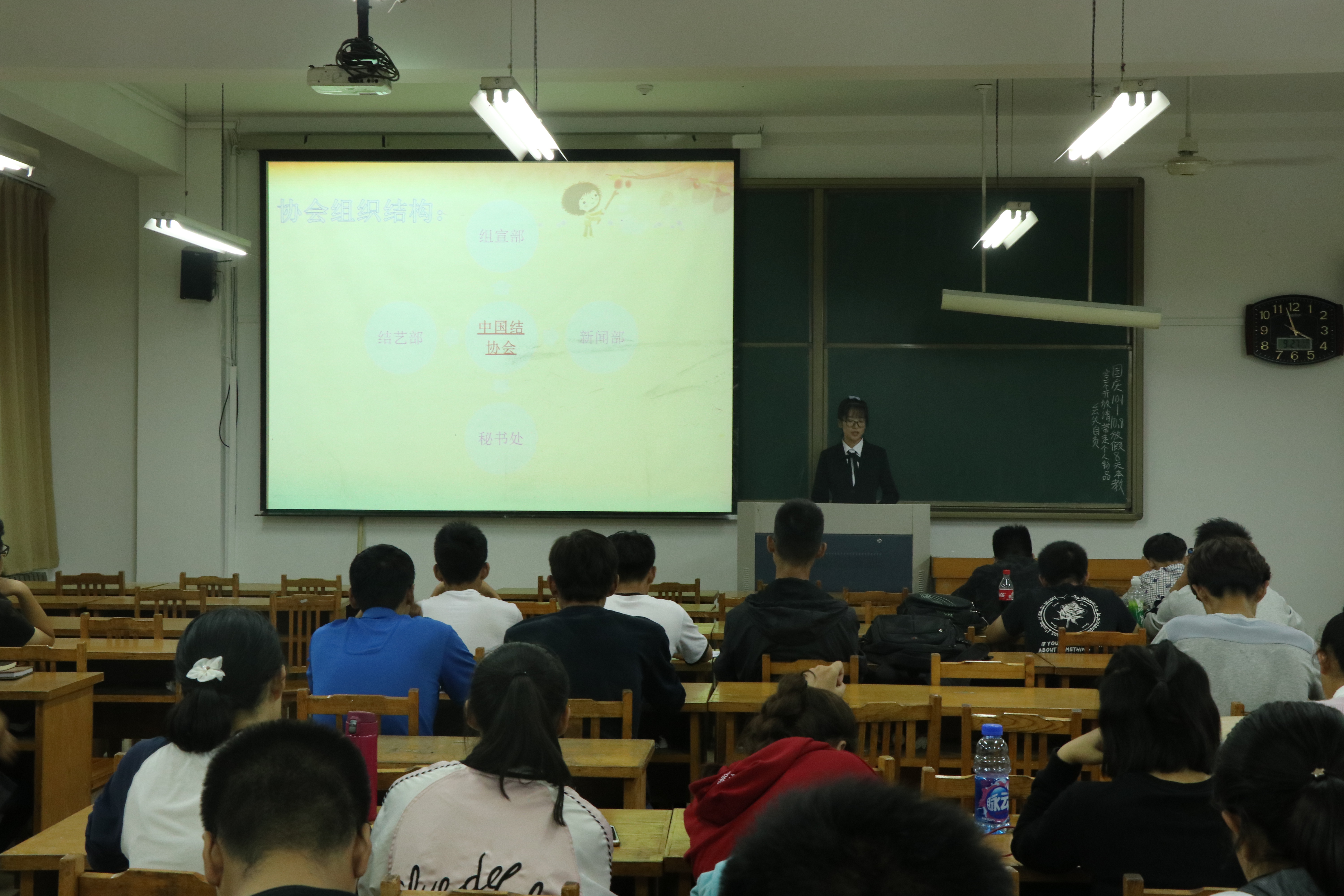 本次纳新活动共分四个纳新教室,数学与统计学院5个社团采取轮流一次宣讲方法对17级新生进行社团介绍。驼铃驿站,数学建模爱好者协会,中国结协会,魅影女生社,星火爱教联盟分别向同学介绍了社团成员,主题活动,部门职能等方面。为17级新生初期认知社团做了较好诠释。