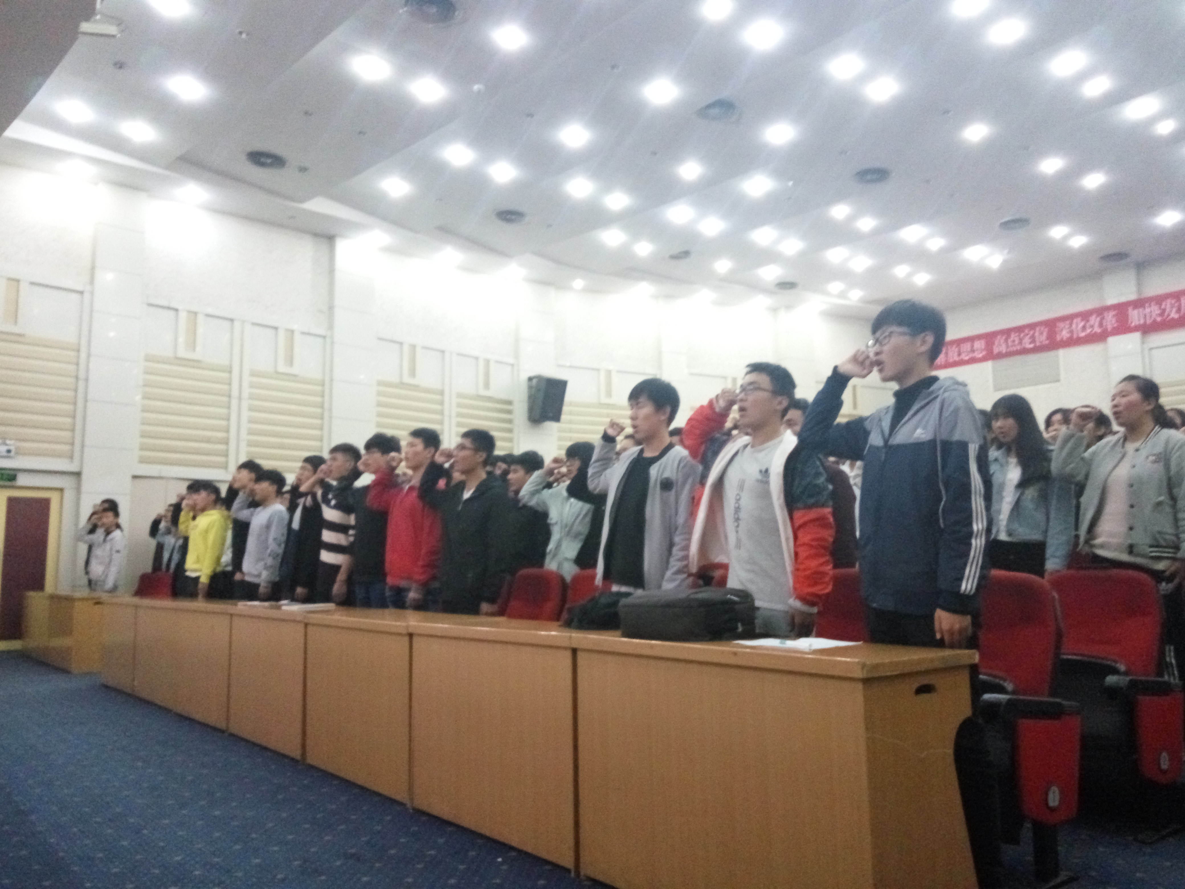 活动以重温入团誓词开始。信科1701班团支书领誓,全体新生高举右臂,握紧右拳,庄严宣誓:我志愿加入中国共产主义青年团,坚决拥护中国共产党的领导,遵守团的章程,执行团的决议,履行团的义务,严遵团的纪律,勤奋学习,积极工作,吃苦在前,享受在后。为共产主义事业而奋斗。宣誓结束后大家一起观看了十九大重要会议精神学习视频。通过观看和学习,新生对十九大重要精神有了进一步的思考和理解,更加积极主动地从自身言行出发分享自己的所思所感。
