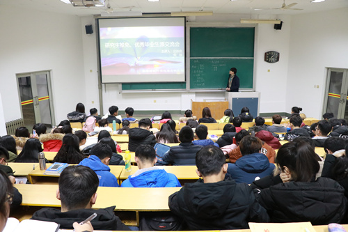 我院于12月14日在15号教学楼206教室举办了研究生推免、优秀毕业生生源交流会。优秀推免研究生代表公沛良、倪璇为现场同学做了分享交流。17级部分新生参加此次交流会。