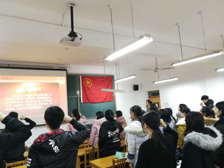 最后,团支部副书记崔建图带领大家重温入团誓词,并由团支部成员李俊颖领唱团歌《光荣啊,中国共青团》。活动结束后,崔建图与组织委员迟永峰将团徽分发给团支部成员,并教给大家正确佩戴团徽的方式。至此,本次活动圆满结束。