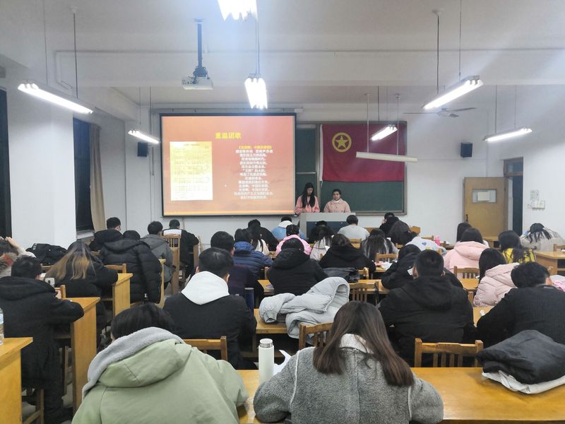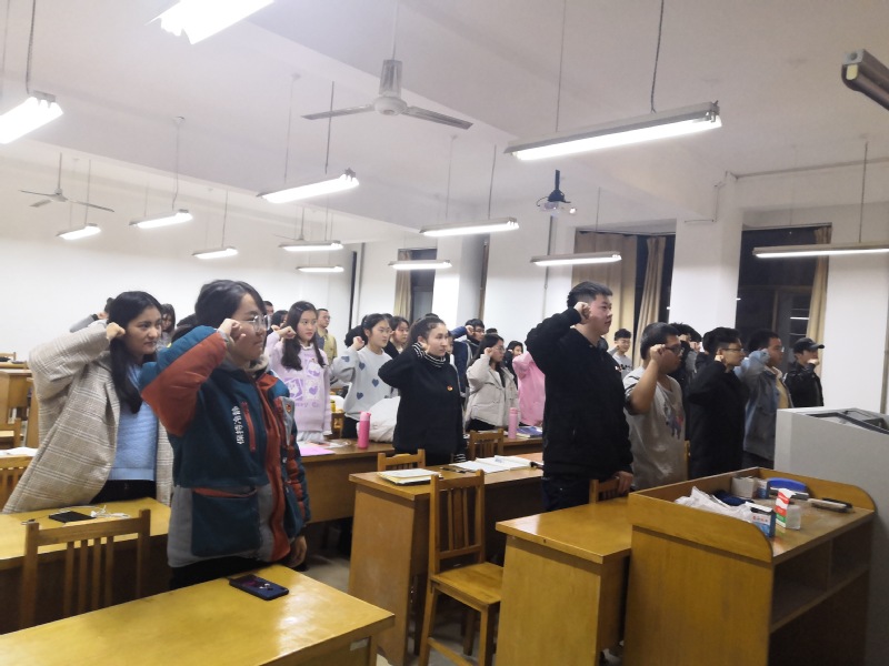 活动伊始,组织宣传委员徐玥带领大家唱团歌,加深大家对团歌的印象,并以最好的状态参加这次的团日活动。徐玥与班长杨震东将团徽发给大家,同时努尔斯曼姑丽认真教大家团徽正确的佩戴方式。接着努尔斯曼姑丽介绍了此次活动的目的,具体介绍了此次活动的全部流程。紧接着努尔斯曼姑丽像大家介绍了团旗、团徽的组成部分及代表的意义,让大家更加了解团的意义,随后,她向同学们进行了关于共青团知识的详细讲解,并偶尔会以提问同学的方式来加深大家的印象。介绍的最后还进行了一场紧张有趣的知识抢答活动。同学们积极回答,活动的气氛紧张而有序。最后,杨震东带领大家重温入团誓词,团员们慷慨激昂地宣读着入团誓言。活动结束之际,努尔斯曼姑丽对本次团日活动做总结发言,她希望团支部成员要加强团员意识,自觉做一名合格的共青团员。