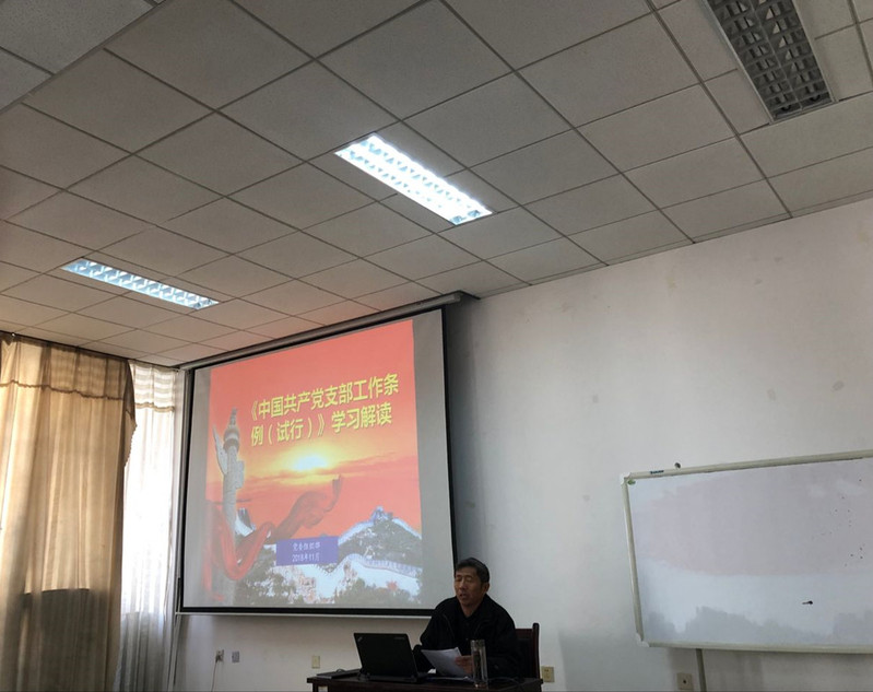 会议伊始,王文锋通过介绍《条例》出台的背景意义、主要内容,来带领大家学习《条例》。他强调要充分认清《条例》制定和实施的重大意义,要全面贯彻《条例》对党支部工作作出的规范。《条例》的制定和实施,对于加强党的组织体系建设,推动全面从严治党向基层延伸,全面提升党支部组织力,强化党支部政治功能,巩固党长期执政和组织基础,具有十分重要的意义。要切实高度重视,提高政治站位,认真抓好贯彻落实。随后,王文锋介绍了我国宪法修改的重点内容及其重大历史意义。“天下之事,不难于立法,而难于法之必行。”——他提出宪法作为我国的根本大法,它的每一次修改都是谨慎而影响深远的,作为一名党员更是应该学习宪法、尊崇宪法、遵守宪法、维护宪法、运用宪法,在全社会弘扬宪法精神。最后,王文锋表达了对师生党员们的殷切希望,希望各位党员能不忘初心,为祖国的和谐发展贡献力量。