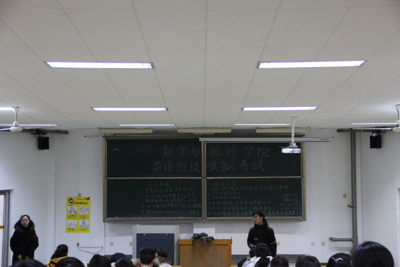 考试伊始,学习部部长郭林杰将考试注意事项和考试流程工写在了黑板上,并在考试前几分钟向考生清楚地讲述了考试规则,本次考试的考试题型、考试流程及考试环境都严格遵照全国老员工英语四六级考试的大纲标准,分为听力、阅读、综合、翻译和作文,考试在11:20结束,此次考试共140分钟。随后学习部的成员发放了试卷。在考试铃声响起后,考场瞬间安静下来,考生们立即进入了答题状态,学习部的成员按照考试纪律严格监考,考场氛围浓厚。英语听力考试后,学习部的成员收齐了答题卡,考场秩序依旧保持良好。答题过程中没有交头接耳,考生们都在奋笔疾书,虽然这次是四六级的模拟考试,但考生们做题都非常认真,态度端正,把这次考试当成是一次真正的四六级考试。最后,考试结束的铃声响后,学习部的干事迅速将试卷收齐,考生随后有序离开。