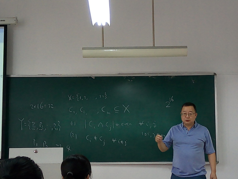 首先李功胜代表公司对向青教授的到访表示欢迎,并对其做了简短介绍。此场报告以线性代数在组合学中的应用为主题,用简单易懂的组合学问题开篇,以奇镇和偶镇为例利用线性代数中的线性相关、线性无关、矩阵的秩等巧妙了证明了两个极值组合的问题,随后还向大家展示了几个利用线性代数知识证明编码理论和组合数学中其他案例。整场报告深入浅出,深受同学们的欢迎。