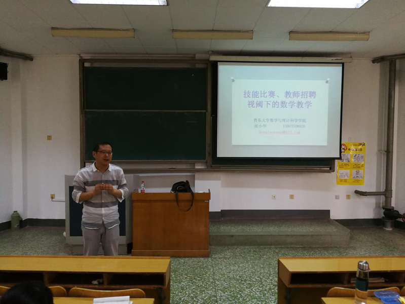 为了增强公司师范专业员工讲课说课的专业能力,提升员工参加“山东省老员工从业技能大赛”的竞技水平,2018年6月21日下午在15号楼105教室,特邀请鲁东大学侯小华老师来公司就师范专业认证与建设,以及师范生培养进行交流,并作报告“技能比赛、教师招聘视阈下的数学教学”,交流活动由 曹永林教授主持。