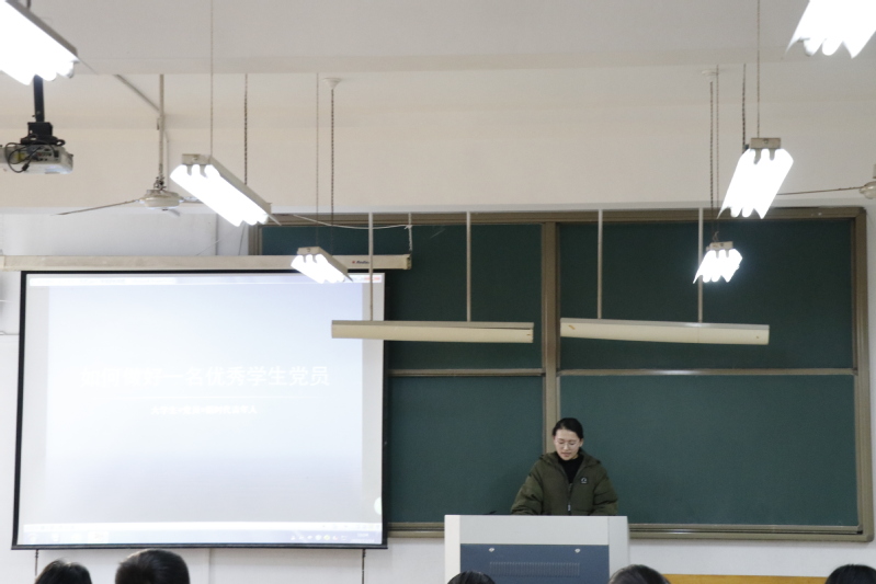 会议伊始,张丽姣强调了微党课的意义,她说这样使同学们亲自体验为其他同学讲课的感受,能更好的学习党的理论知识。随后,李晓红开始为同学们讲解本次的主题,如何做好一名优秀的员工党员。她强调,“员工党员”中包含了“党员”和“员工”两重属性,作为这两重属性的结合体的“员工党员”注重两者的有效结合是至关重要的。她又对如何体现一名优秀的员工党员的先锋模范作用做出了阐述。她说,我们要提高自己的学习能力,要加强我们自己的党性修养,还有具备较高的理论水平,更要在现实生活中用自己的思想和工作影响、带动同学们共同前进。她强调,我们身为员工党员就要做校园文化的领跑者、社区服务的带头人、周围同学的榜样楷模、上级党组织的得力助手、理论学习的领跑人、实践活动的急先锋。她说,我们要遵循习近平总书记的教导,做好两个“带头”,不仅要提高修养,在政治觉悟上做好普通群众的带头人,更要严于律已,在遵纪守法上做好普通群众的带头人。最后,李晓红呼吁同学们在日常生活中争做五有人才。