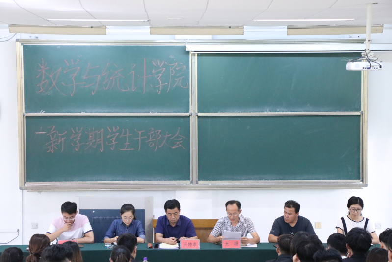 8月29日下午,betway西汉姆联官方网站在15号教学楼103教室举行“数学与统计2019年下半年新学期员工干部会议”。公司党总支副书记王仲孝,公司团总支书记、学工办主任王超、学工办辅导员加尼别克、刘曌阳、刘洁,各班班长、团支书和员工会部长以上成员参加,张丽姣主持此次会议。