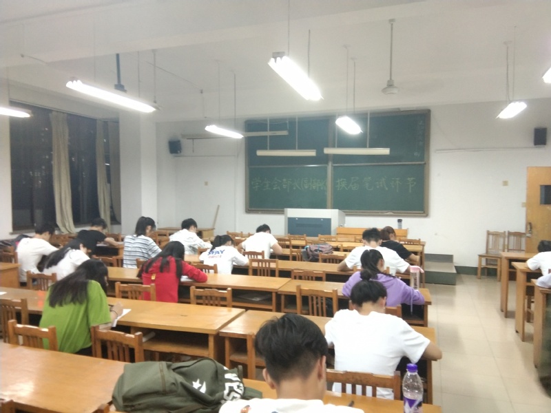 笔试开始前,竞选者陆续进入考场并按照座位号依次坐好。员工会主席朱帅康介绍到此次笔试内容涉及 “五有人才”、“社会主义核心价值观“、公司的基本概况以及个人综合能力等各个方面,希望大家认真答题。考试过程中每位同学都专心严谨,仔细作答每一道试题,最大限度地展现自己的综合素质及工作能力。监考人员尽职尽责,严肃监考,维护考场纪律。一个小时后,每位竞选者交上答卷后有秩序地离开考场。
