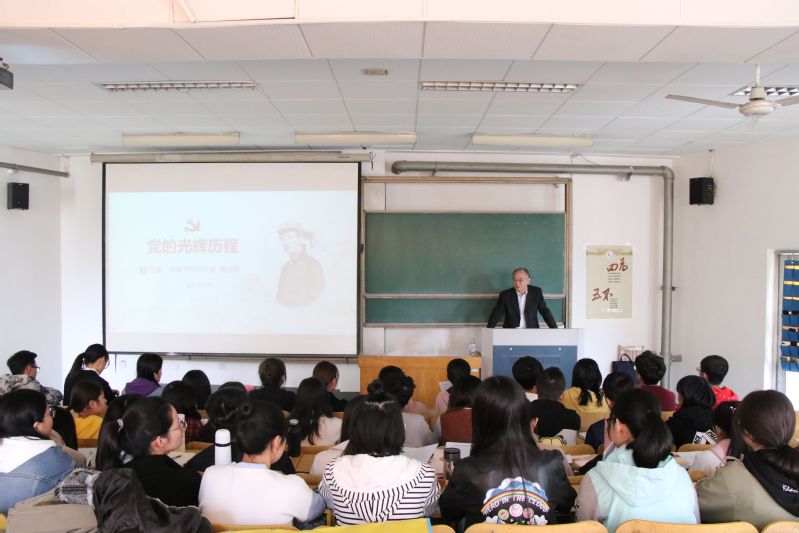 会议伊始,王超向同学们介绍了此次党课主讲人高连歌并表示欢迎。接着高连歌深入浅出地讲解了中国共产党的光辉历程。他从1921年前的中国与世界、新民主主义革命时期、社会主义革命和建设时期、改革开放与社会主义现代化建设时期四个时期对中国共产党的成立、中国共产党取得的新民主主义革命的伟大胜利、社会主义革命和建设的巨大成就、改革开放和社会主义现代化建设的辉煌成就等党的发展历程依次进行讲解。接着,他运用大量图文资料阐述了中国的发展与繁荣离不开中国共产党的领导。他讲到虽然中国与美国等发达国家还存在很大差距,但中国的发展速度让国人感到自豪与自信。他提到中美贸易战和华为事件,更体现出中国的飞速发展给美国带来的恐慌。最后,他讲述毛泽东等革命前辈的感人故事,借此鼓励同学们要有坚定不移的爱国精神。他希望同学们将党艰苦奋斗的精神贯彻到学习生活中去,积极探索、知难而进、奋力拼搏。