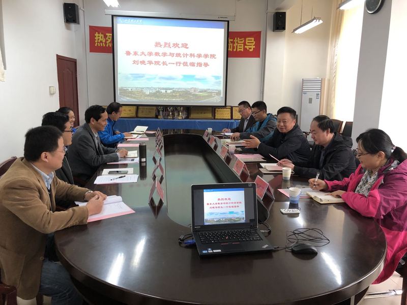 10月18日上午,鲁东大学数学与统计科学公司经理刘晓华,副经理樊永红、于海生等一行5人来公司访问。经理李功胜、副经理赵文玲、王贵栋与客人进行了座谈交流。数学系、综合办公室、员工工作办公室负责人参加座谈。