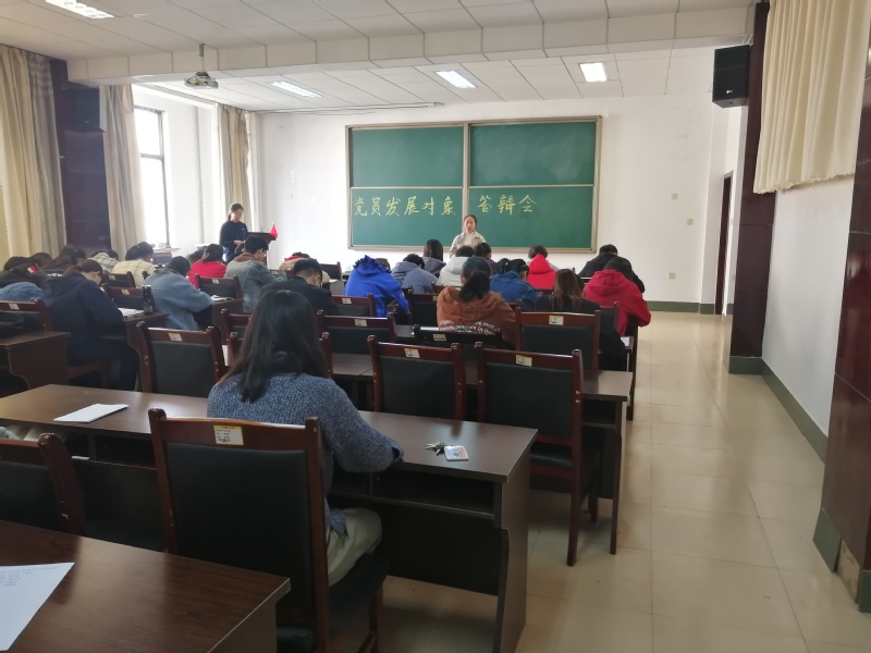 本着答辩公平、透明、公开的原则,此次答辩会采用随机抽题的方式进行答辩。首先,答辩人进行简单的自我介绍,然后根据抽取的问题进行答辩。此次答辩问题涉及个人基本情况、个人思想动态、入党动机等题目重点考察党员发展对象对党的各项知识的理解和本人政治觉悟的高低。答辩中同学们认真思考并作出深刻的回答,凭借自己扎实的功底和对时下热点问题的理解提出自己的看法。同时对答辩过程中涉及的十九大、两会等热点问题发表了自己独到的见解,展现了对党章的认知程度、对党的十九大的了解程度和辨析评议能力。在答辩过程中,党支部书记张丽姣向发展对象提出问题,阐述理解欠缺的知识点。