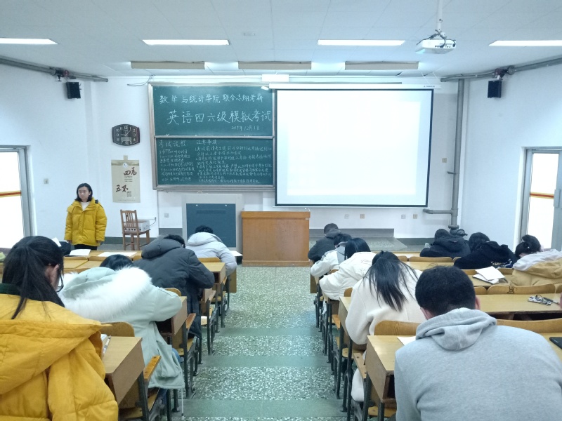 考试伊始,学习部的成员将考试注意事项和考试流程工写在了黑板上,并在考试前几分钟向考生清楚地讲述了考试规则。本次考试的考试题型、考试流程及考试环境都严格遵照全国老员工英语四六级考试的大纲标准,分为听力、阅读、综合、翻译和作文,考试在11:20结束,此次考试共140分钟。随后,学习部干事发放了试卷。在考试铃声响起后,考场瞬间安静下来,考生们立即进入答题状态。英语听力考试后,学习部的成员收齐了答题卡,考场秩序依旧保持良好。在考试过程中,学习部干事按照考试纪律严格监考,考场氛围浓厚。答题过程中没有交头接耳,考生们都在奋笔疾书,虽然这次是四六级的模拟考试,但考生们做题都非常认真,态度端正,把这次考试当成是一次真正的四六级考试。最后,考试结束的铃声响后,学习部干事迅速将试卷收齐,考生随后有序离开。
