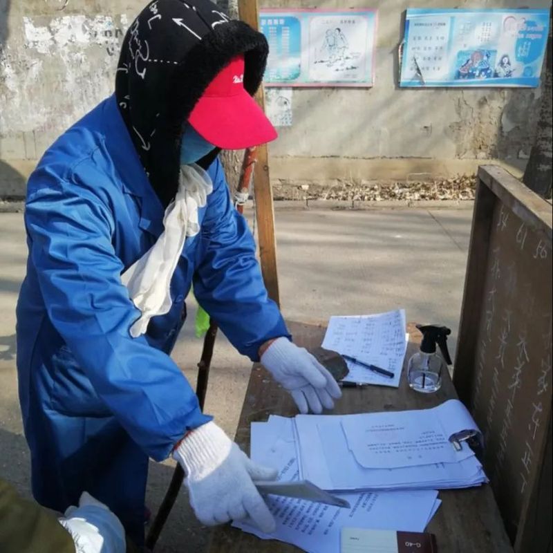 奶奶每日的工作时间并不少,每日从早晨六点到中午十二点,午饭过后小憩一会,两点就要到达劝返点直至晚上六点。爷爷作为一名共产党员自然也是积极“配合”奶奶的工作,负责给奶奶工作物品的消毒工作,奶奶每次往返家中,爷爷都要为奶奶消毒。吕屹琳曾问奶奶,为什么要不计辛劳,每天在劝返点工作十小时,负责进出口的把关签字工作。奶奶回答说,这项工作与身在武汉工作的医护人员的工作相比,并不辛苦,奶奶工作时是感到快乐与幸福的,奉献了小小的力量,快乐是大大的,价值是满满的。社区工作群时常发出奶奶工作的照片,严谨认真的样子真是让人可敬可亲。
