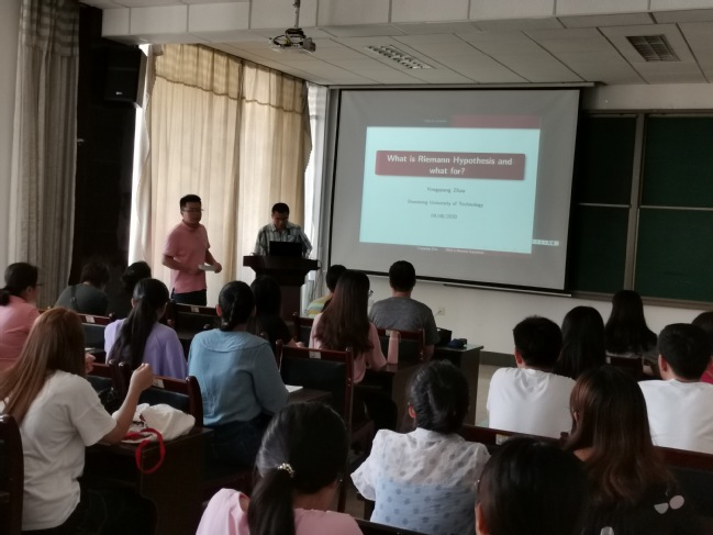 2020年9月8日下午,betway西汉姆联官方网站邀请到西湖大学赵永强研究员来公司交流并作题为“黎曼猜想简介”的学术报告,公司部分老师与全体在校数学研究生在15号教学楼报告厅聆听了此次报告。本次报告由公司副经理孙俊涛教授主持。