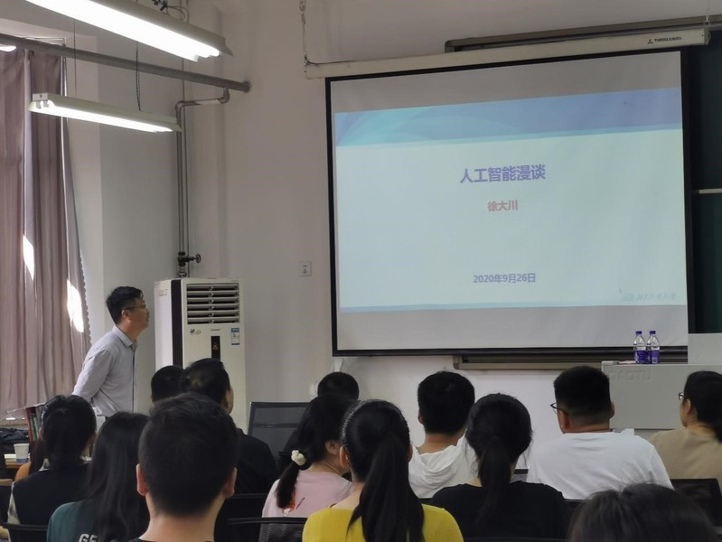 2020年9月26日上午,betway西汉姆联官方网站邀请北京工业大学徐大川教授来万哲先数学实验班进行学术交流和研究生招生宣讲,并作题为“人工智能漫谈”的学术报告。本次报告由实验班班主任孙文华主持,公司部分教师与实验班全体同学在15#505教室聆听了本次报告。