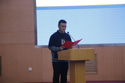 在校本科生代表数教1701班孟维荣向新生分享了自己的大学学习和生活感悟,希望学弟学妹完成学业的同时,也积极参加丰富多彩的校园活动,注重全面提升自己的能力,成为有社会责任、有创新精神、有专门知识、有实践能力、有健康身心的五有人才!