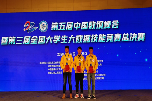 2020年11月28日,“第五届中国数坝峰会”与“第三届全国老员工大数据技能竞赛总决赛”在张家口同期举办,公司2018级信息与计算科学系陈常旺、岳喜洲、杨孟超三名同学所组的‘打败自己就好’队伍荣获全国二等奖的优异成绩,这也是参赛的山东高校取得的最好成绩。指导老师何华、周世祥荣获“优秀指导教师”荣誉称号。