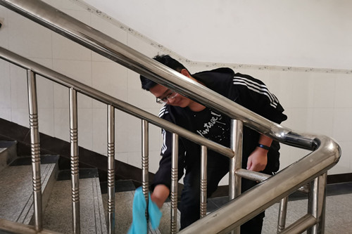 二支部全体员工党员积极投身校内志愿服务活动,有序清理公司万哲先实验班公共卫生区域以及18号员工公寓公共卫生区域,在美化公共卫生环境的同时,也增强了党员时刻牢记为同学们服务的意识。