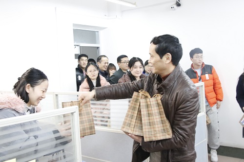 活动开始,公司领导亲切慰问考研学子,为考研员工们送上美好的祝福,给考研员工们加油打气,希望他们坚定信念,努力奋斗,坚持到底。同时提醒考生在冲刺阶段调整好心态,劳逸结合。随后各位领导老师向考研学子派发精心准备好的“考研加油包”。“考研加油包”考试所用到的各种文具以及各种有着美好寓意的小礼品:寓意“牛气冲天”的牛奶,代表“棒上有名”的棒棒糖,赋予“心想事橙”“马到橙功”祝愿的橙子。