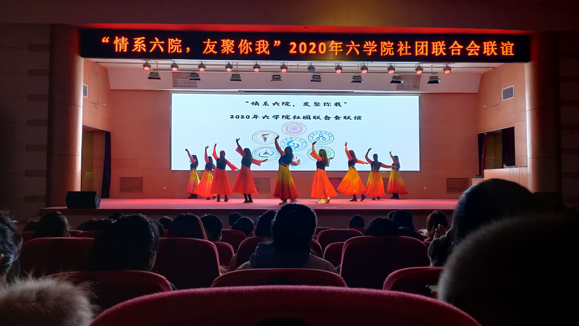 公司社团联合会为此次联谊晚会准备充分,驼铃驿站协会志愿者带来了众多优美的舞蹈和动人歌曲,联谊开始前仍在认真排练,准备道具等。主持人的致辞拉开了社团联谊晚会的帷幕,由公司驼铃驿站协会的芒妮萨·阿卜力孜,萨妮古丽·麦麦提敏等人为大家带来开场舞蹈串烧挑起了满厅师生的激情,精彩的开场赢得了观众的一片欢呼,陆续的各社团的节目开始登场。