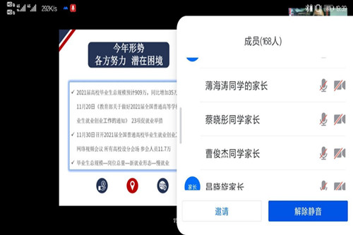交流会主要涉及今年毕业形势、当前就业创业政策以及本届毕业生当前就业情况通报。其中关于就业创业政策,张丽姣通过基层就业、自主创业、征兵入伍、军队文职等各类就业渠道和政策形势为家长逐一展开讲解,并就毕业生制作和投递简历的注意事项进行了详细说明,与各位家长沟通毕业生就业心态和就业观念的重要性,要求各位毕业生应当保持乐观态度,积极就业、主动就业。部分家长通过平台对话框提出问题,并在线上得到了及时解答。交流会结束之前,张丽姣还将本学期以来持续更新汇总的招聘信息库通过线上渠道发到了各位家长手里,保证各位家长和毕业生均能在考研结束之后系统查看,择其所需,主动出击。此次线上家长会大大促进了公司与毕业生家长的双向沟通,家长们进一步了解了公司就业工作的开展以及就业帮扶具体举措,辅导员老师也对员工家长的想法和态度有了更深入的了解,这为2021届毕业生就业工作的顺利开展奠定了良好基础。毕业生家长们也表示会配合公司做好员工就业工作,帮助员工树立正确的择业观,更加顺利地度过就业季。