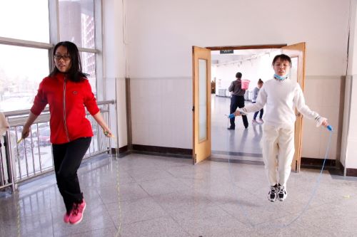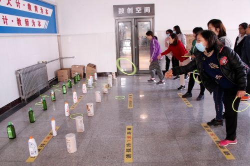 接着,栾云老师详细介绍了本次趣味活动的项目和规则:个人项目有定点跳绳和套圈,集体项目有背向投毽入筐。每一个项目都不简单,不仅需要体力,更需要技巧。在活动开始之前,老师们就已经迫不及待地开始练习了,准备在正式比赛的时候一展身手。