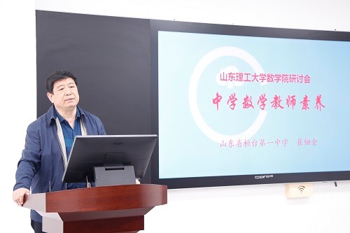 崔佃金教授从通用素养、数学素养、发展素养三个方面对中学数学教师核心素养进行汇报。崔教授用平实的语言、生动的案例,通过引用习近平在座谈会上提出的“八个统一”及叶澜教授课堂教学的“五个实”向大家展示了怎样上好一堂好课和该从哪些方面提高教师的核心素养,并对培养方案修订提出了诸多宝贵意见。