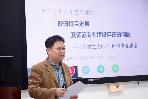 最后,孙文华老师介绍了近三年来师范专业人才培养模式改革以及教研项目的进展情况,同时指出了专业建设目前存在的问题。孙主任提到专业建设即是任务也是责任,即是机遇也是挑战,希望团队建设能够在各位领导的指导下取得长足进步。最后孙老师以专业建设有感结束了本次教学研讨会。