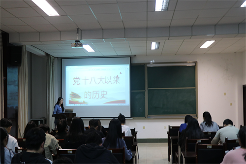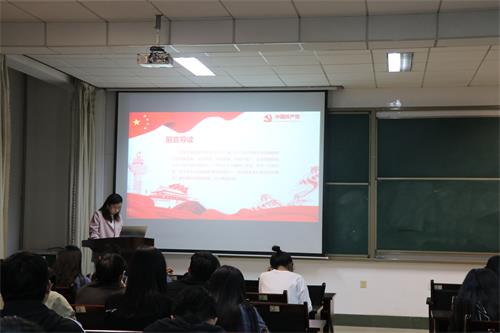 宣讲会伊始,高宁宁首先向大家介绍了本次宣讲的主题以及宣讲人员名单。4名研究生党员王淑尧、刘文翼、孙悦、张瑜围绕百年党史时间线涵盖新民主主义革命时期、社会主义革命建设时期、改革开放时期、党的十八大以来的历史四个方面内容先后开展主题宣讲。他们以生动的讲解、真挚的情感,让在场的党员从党的伟大奋斗历程中汲取继续前进的智慧和力量。