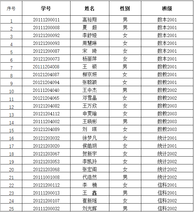 根据《万哲先数学实验班选拔办法》,通过笔试、面试和综合评定环节,经教授委员会讨论,现将2020级万哲先数学实验班录取名单公示如下。