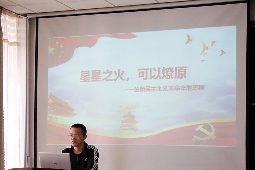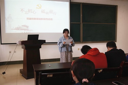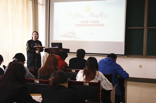 会议伊始,党支部成员首先针对党建创新项目、党支部建设以及党员作用发挥等方面提出建议意见。他们讲到可以增加谈心谈话活动的次数,增加实践活动加强党史了解,多进行志愿活动服务社会等建议。王凤璐围绕“不忘初心,砥砺前行”主题从活动目的,活动形式,成果展示等方面对员工第一党支部党建创新活动《党员精准帮扶—新疆预科班能力提升计划》进行阶段性总结汇报。她重点从学业帮扶情况,预科班同学志愿服务情况,班级开展的团日活动,谈心谈话活动等方面进一步具体展示了党员精准帮扶计划的成果。少数民族预科班代表发言表述自己对党支部预科班能力提升创新项目提出建议与反馈。他们讲到在党支部预科班能力提升创新项目的帮助下,了解了更多有关党的知识,增强了归属感,收获很大。