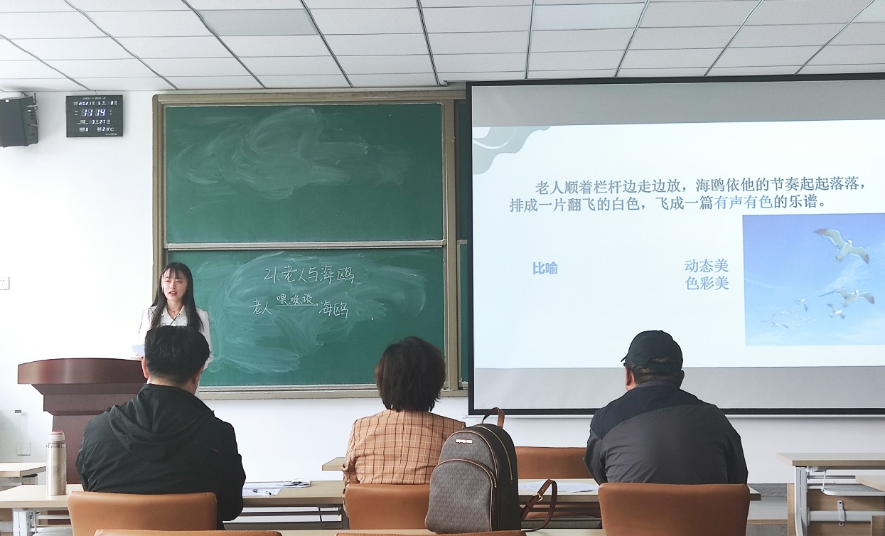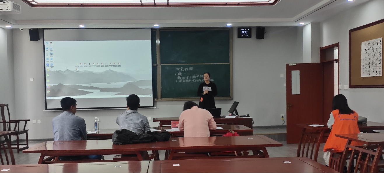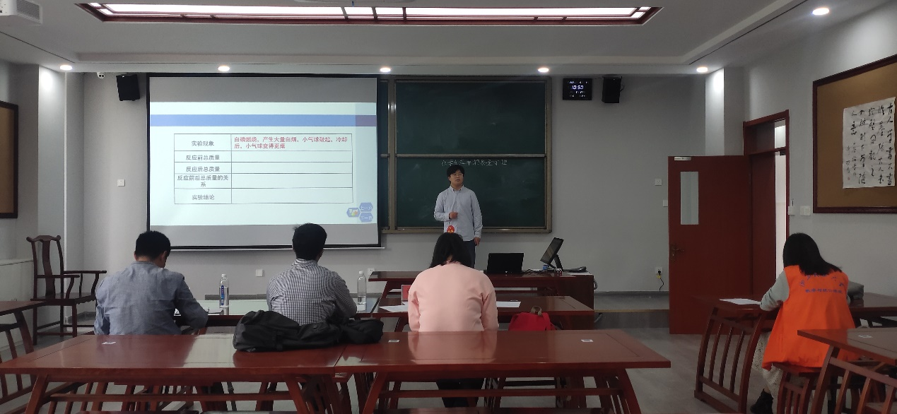 固定题目模拟上课环节,他们精神饱满、教态自然,运用多媒体课件和自制教具等教学工具作为辅助,突出了新课程的教学理念,展示了优秀的课堂教学技巧。在模拟课堂上充分展现了青年教师应有的的风采,从课件和讲课模式的准备上能感受到他们充分认识到了教师这一角色所应该秉持的态度和承担的责任,体现师范生所应该具备的专业知识和综合素养。