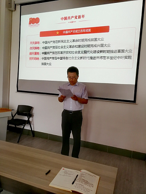 6月30日下午,betway西汉姆联官方网站副经理孙俊涛在15号教学楼114室以“学史明理,坚定理想信念,做中国特色社会主义的坚定信仰者和忠实实践者”为题,为统计学系党支部党员讲授党史学习教育专题党课。