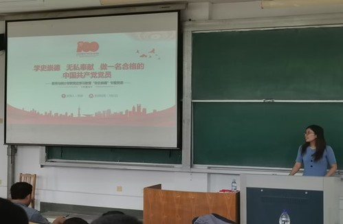 最后,由研究生党支部书记刘洁做“学史崇德 无私奉献 做一名合格的中国共产党党员”的专题党课。刘洁从正确理解学史崇德的深刻内涵,涵养对党忠诚的大德、为民造福的公德、严于律己的私德,从百年党史中汲取精神力量,用实干永葆初心使命,用奋斗托举伟大梦想,学史崇德,立德树人,培养德智体美劳全面发展的社会主义建设者和接班人三个方面讲授。结合百年非凡奋斗历程中的一大批视死如归的革命烈士、顽强奋斗的英雄人物、忘我奉献的先进模范感人事迹引起全体共鸣。