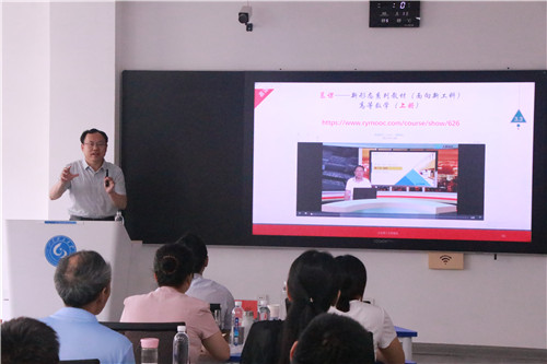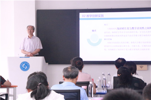 报告会第一阶段由经理李功胜主持。在报告会上,山东大学张天德教授以“大学数学教学创新思路及实践”为题从金课、课程思政及新形态教材分享了教学实践过程中的体会心得;山东科技大学赵文才教授围绕高等数学一流课程建设交流了教学创新及教学团队创新建设;淄博五中杨本春老师介绍了新高考模式下高中数学教材的变化与实施。