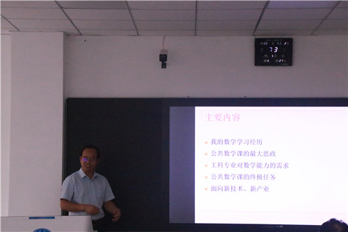 会议伊始,李功胜致辞。首先热烈欢迎和真挚感谢参加本次报告会的领导专家,简要介绍了公司的团队队伍、专业建设、团队建设等基本情况以及大学数学教学部的基本情况。他表示,大学数学教学关系全校人才培养质量的提升,新的形势下,公司深入落实公司加强基础课教学的要求,积极推动公共数学教学改革和分层次教学,希望各位专家就如何推进公共数学教学改革、如何提升教学质量传经送宝、建言献策。