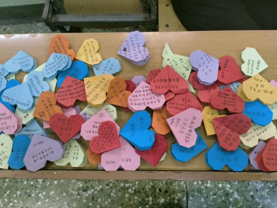 活动伊始,协会会长介绍了此次活动的参与人员与活动目的。本次活动由协会结艺部负责人分组指导协会成员“中国心”手工制作,各组成员积极参与折纸学习中,充分发挥想象力和创造力,成员之间协作配合,各式各样的爱心折纸纷纷成型。负责人协助成员在手工艺品上撰写表达爱国之情的文字并粘贴展览。