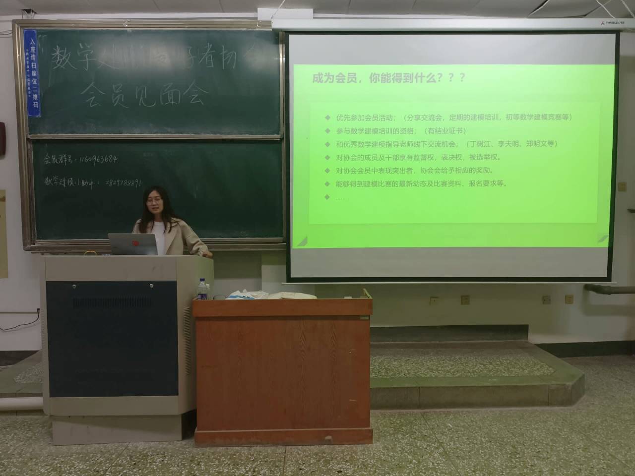 为使同学们更好地了解协会,数学建模爱好者协会于10月23日在15号教学楼103教室举行数学建模会员见面会,由协会负责人薛梦主持。