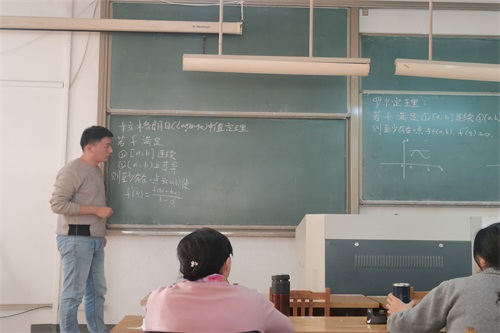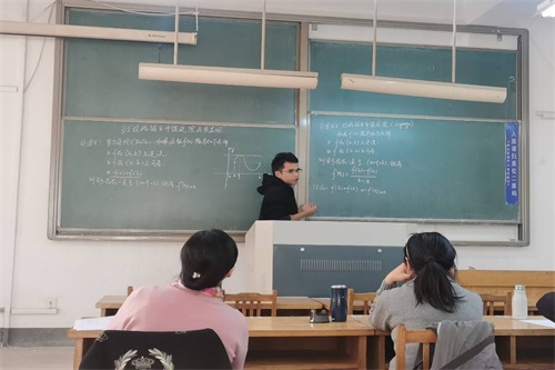 考核过程中,六名新入职教师根据自己助课的课程内容或将要讲授的课程内容,对试讲考核作了精心的准备,杜燕燕、马奎成、潘恺、司苏亮、宋长振、颜志老师依次进行了脱稿板书试讲,讲课内容涉及洛必达法则、函数列的一致收敛性质、伴随矩阵、罗尔定理、拉格朗日中值定理、中心极限定理等。六位教师分别从理论和实践角度展开教学过程,体现了较好的专业素养和教学水平。考核专家组成员也进行了客观公正的书面评价。