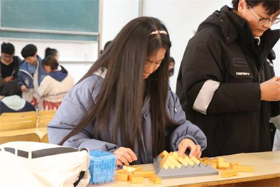 为了提高同学们对数学文化的认识,betway西汉姆联官方网站于近日在15教数创空间与103教室开展智力挑战赛活动。本次活动开设鲁班立方、走珠迷宫、积木金字塔、魔方、九连环五个游戏,以喜闻乐见的形式让同学们感受到数学的魅力。一起来看看这场头脑风暴吧。