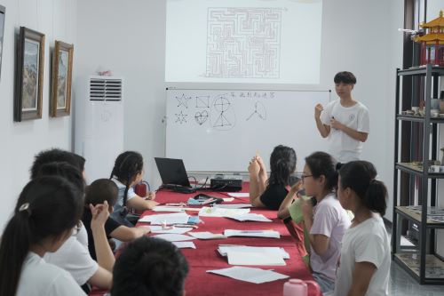 下午,孩子们到达课堂之后,实践同学对孩子们讲授了“由一笔画到走迷宫”数学文化特色课程,实践团队成员将大学的知识用通俗易懂的语言,为孩子们讲解生活中的游戏,提高孩子们对于数学学习的热情。
