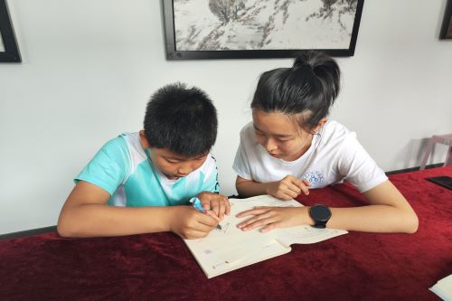 之后,实践团队成员对孩子们进行了一对一的暑期课业辅导。