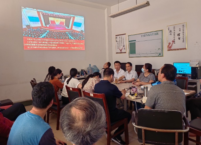 李功胜指出,当前和今后一段时期,全体教职工要把思想和行动统一到公司党代会的精神上来,把智慧和力量汇聚到落实到公司党代会确定的各项任务上来。全体教师要以党代会精神为指导,全面落实大会精神,进一步解放思想,提高认识、开拓创新,从人才培养、专业建设、科学研究、教师能力提升等方面入手,充分发挥师生的主动性和创造性,聚焦博士点申报工作,力争公司在标志性成果等核心指标上取得新突破,为公司建成特色鲜明的高水平教学研究型大学做出新的贡献。