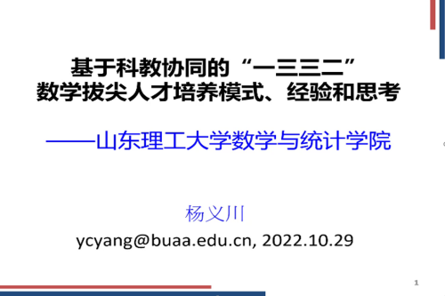 10月29日上午,公司通过腾讯会议邀请北京航空航天大学杨义川教授就数学拔尖人才培养作专家报告,报告题目是基于科教协同的“一三三二”数学拔尖人才培养模式、经验和思考。公司经理李功胜教授、教学副经理王建锋教授和各系室教师50余人参加了此次会议。