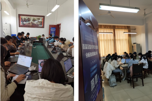 统计学系刘霞老师、曹文芹老师组织考生进行统一的线下考试,员工们认真参与网考,进行同场竞技。