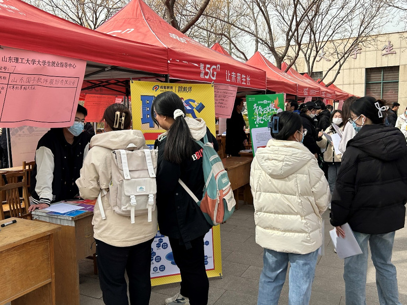 本次双选会有济南博赛网络技术有限公司、淄博市张店区潘庄高级中学、山东新未来智能工程有限公司等25家单位参加,提供岗位300余个,吸引求职人数500余人。招聘会现场秩序井然,参会毕业生准备充分,同学们积极向用人单位投递简历,并就个人能力、专业特长、工作内容、发展前景等方面与用人单位进行高效沟通,寻找适合自己的就业、实习岗位。各用人单位招聘工作人员也耐心为毕业生答疑解惑,积极沟通签约、职业成长发展等事宜。