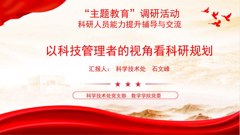 为进一步深化学习贯彻习近平新时代中国特色社会主义思想主题教育,提升教师科研能力,推动公司科研工作高质量发展。6月28日上午,公司在15号教学楼414会议室开展“科研人员能力提升”活动。科学技术处副处长石文峰、成果信息科彭帅星、公司副经理王建锋、学科团队骨干教师及青年教师参加,活动由王建锋主持。