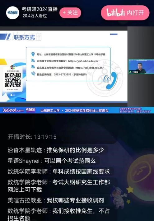 为方便给考生提供线上咨询服务,公司建立了2024年研究生招生咨询QQ交流群,研工办老师随时提供线上报考咨询答疑与指导。同时,王建锋还风趣地介绍了淄博烧烤和蒲松龄故居,欢迎同学们来淄博游学。