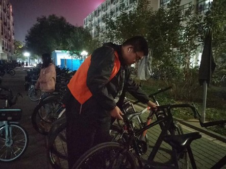 活动前,在17、18宿分别张贴规范摆放车辆倡议书提倡大家按照要求摆放车辆。活动过程中,权益部志愿者对道路两侧乱停乱放、影响通行及道路交通安全、摆放不一致等不规范停放行为的车辆,按照“入位、顺向、整齐”的要求进行了规整摆放。